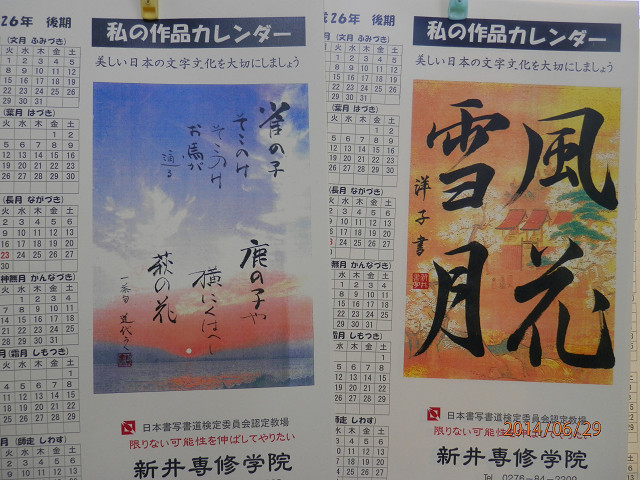 >> TOPページ >> お知らせ >> 書写生の後期カレンダー作品できたよ!!